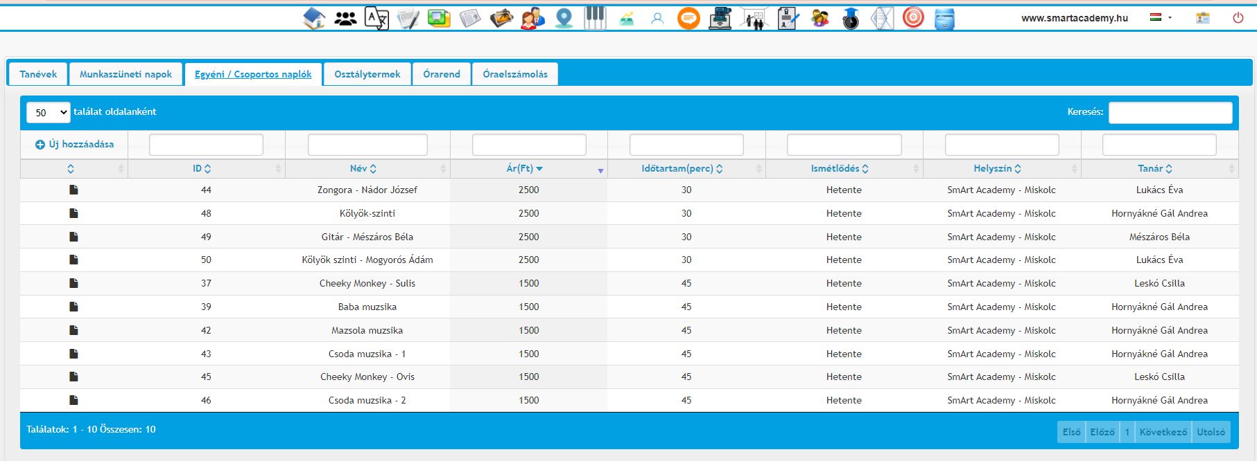- A módosítandó napló sorában a bal oldali oszlopban található ikonra kattintva módosítható a kiválasztott napló.