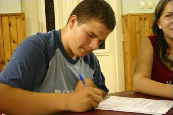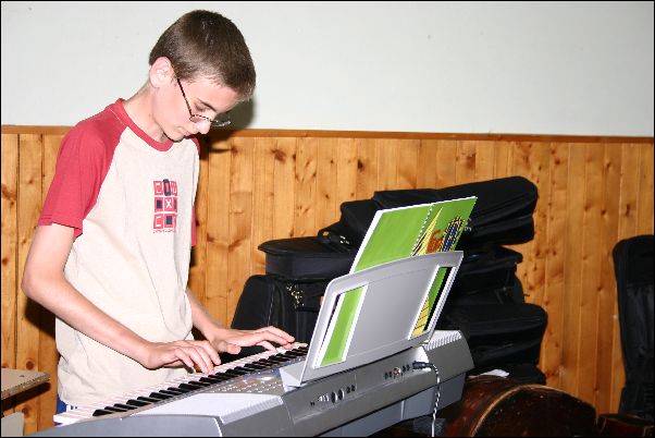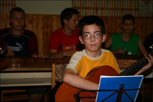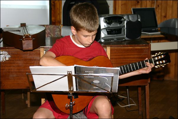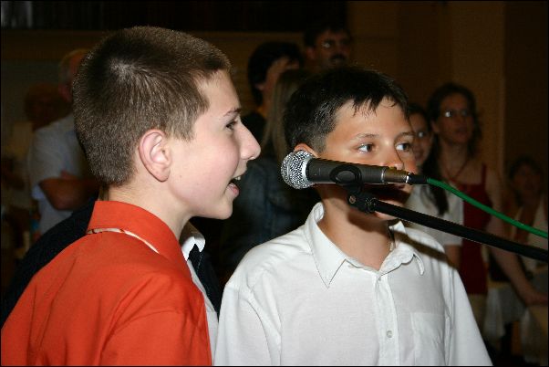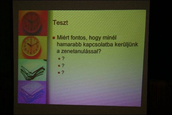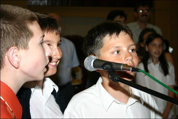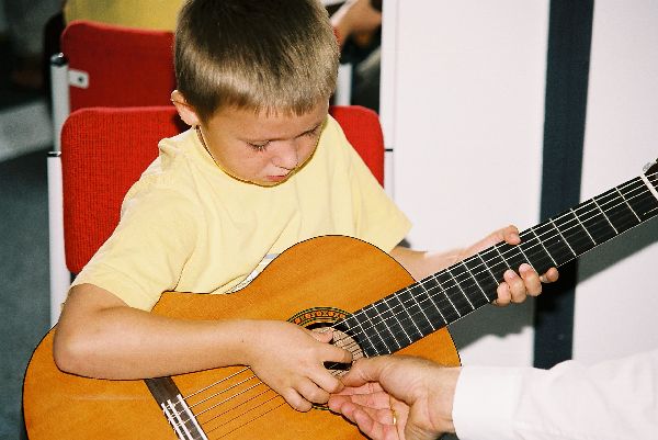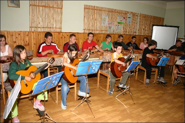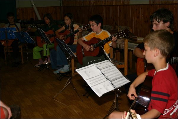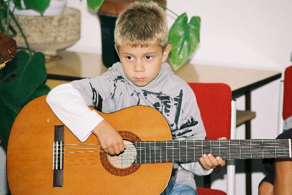 Első "negyed" tanévünk végén - 2006. június 20-án - az Ifjúsági és Szabadidő Házban Miskolcon tartottuk első növendék hangversenyünket. Természetes módon alkalom adódott arra is, hogy a szülők, rokonok is részt vegyenek a közös produkcióban. |